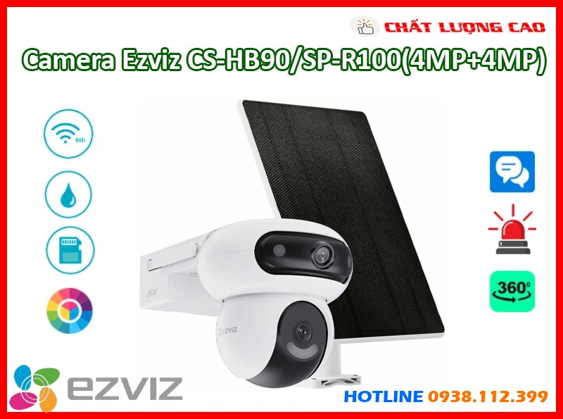 Camera Ezviz CS-HB90/SP-R100(4MP+4MP) là camera Wi-Fi IP sở hữu cảm biến CMOS 1/3 cùng độ phân giải 2K+ cho một ống kính, mang đến hình ảnh sắc nét. Thiết kế ống kính kép 2. 8mm và 6mm cùng khả năng xoay linh hoạt giúp giám sát mọi góc độ. Hệ thống nén H